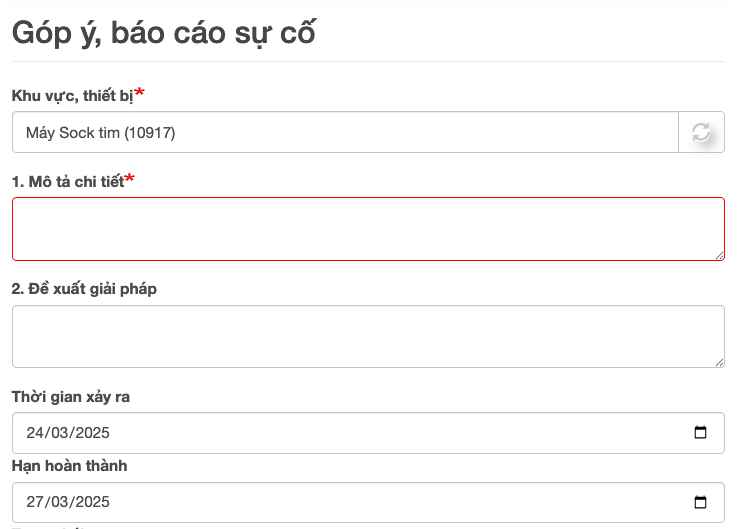 Bước 1. Click vào "Báo sửa chữa, bảo trì"