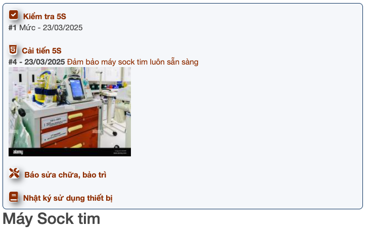 Sau khi vào Trang quản lý thiết bị qua QR Code. Bạn sẽ thấy nhiều hoạt động quản lý có thể thực hiện với cấp độ là người sử dụng, vận hành thiết bị,