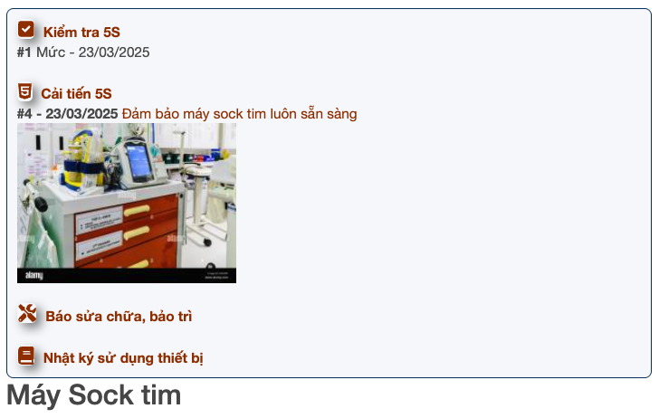 Sau khi vào Trang quản lý thiết bị qua QR Code. Bạn sẽ thấy nhiều hoạt động quản lý có thể thực hiện với cấp độ là người sử dụng, vận hành thiết bị,