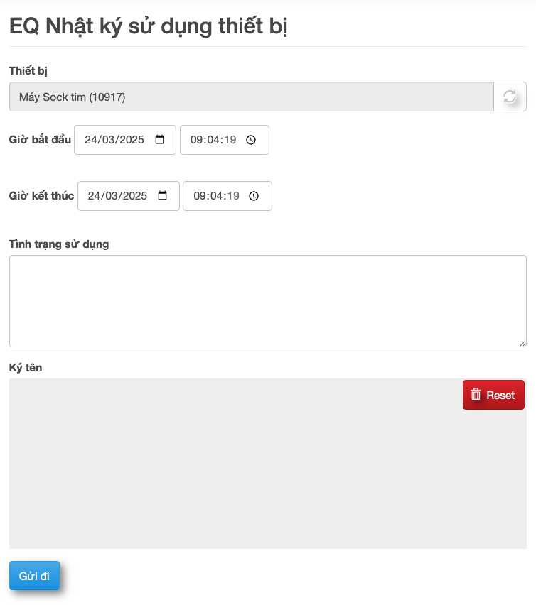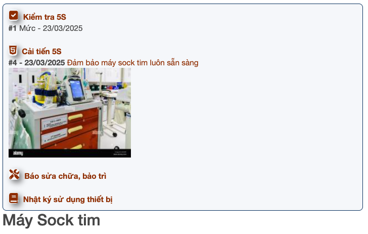 Sau khi vào Trang quản lý thiết bị qua QR Code. Bạn sẽ thấy nhiều hoạt động quản lý có thể thực hiện với cấp độ là người sử dụng, vận hành thiết bị.