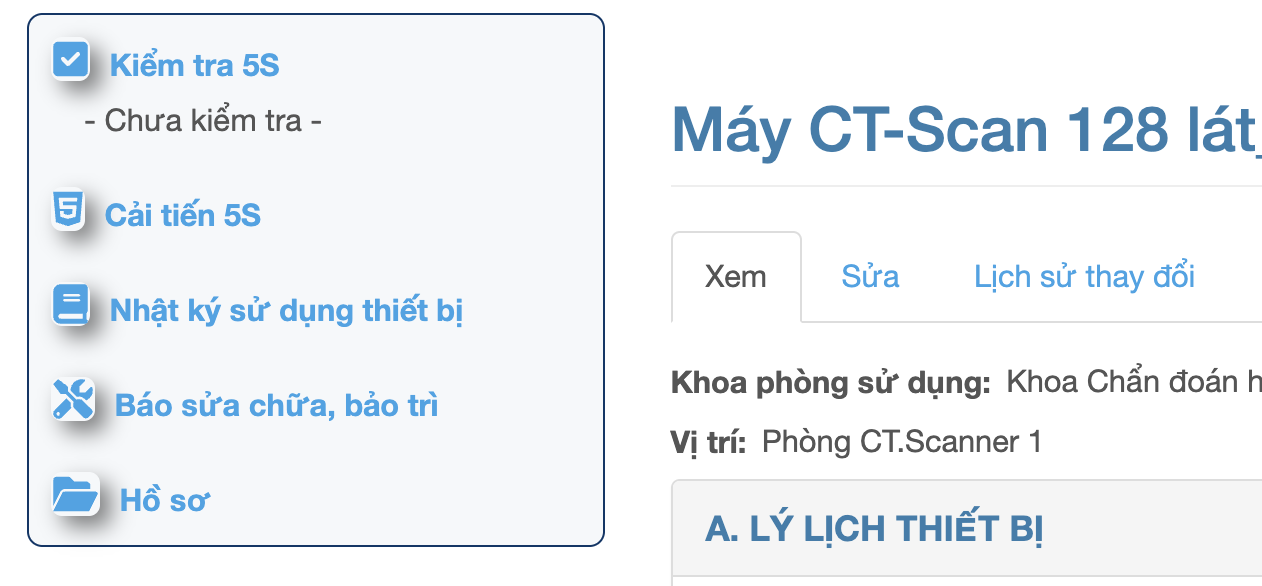 - Xem hướng dẫn Xem, sửa, cập nhật thông tin thiết bị hiện có [Phòng VTTB]