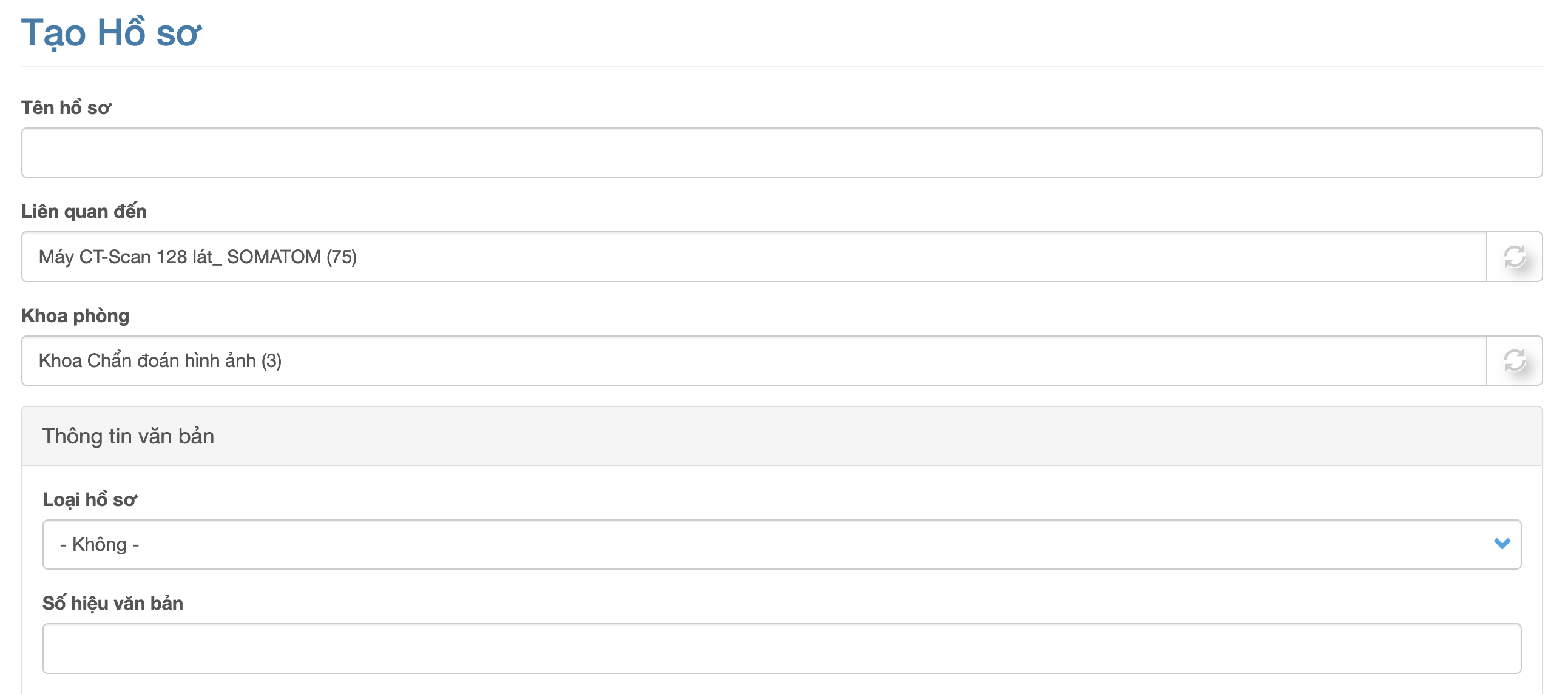 - Tại form Tạo hồ sơ mới, điền các thông tin phù hợp.