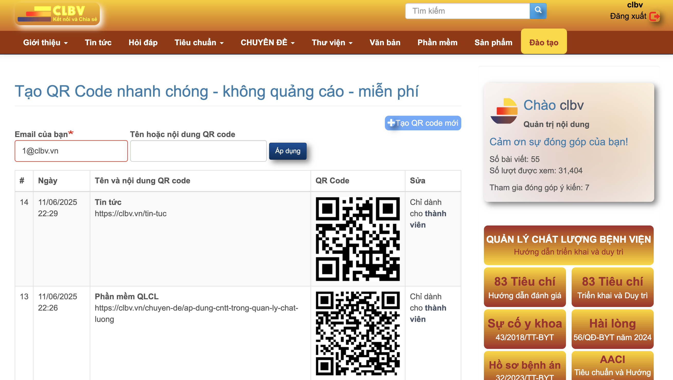 Nếu bạn là thành viên của trang clbv.vn bạn sẽ có quyền sửa QR code.