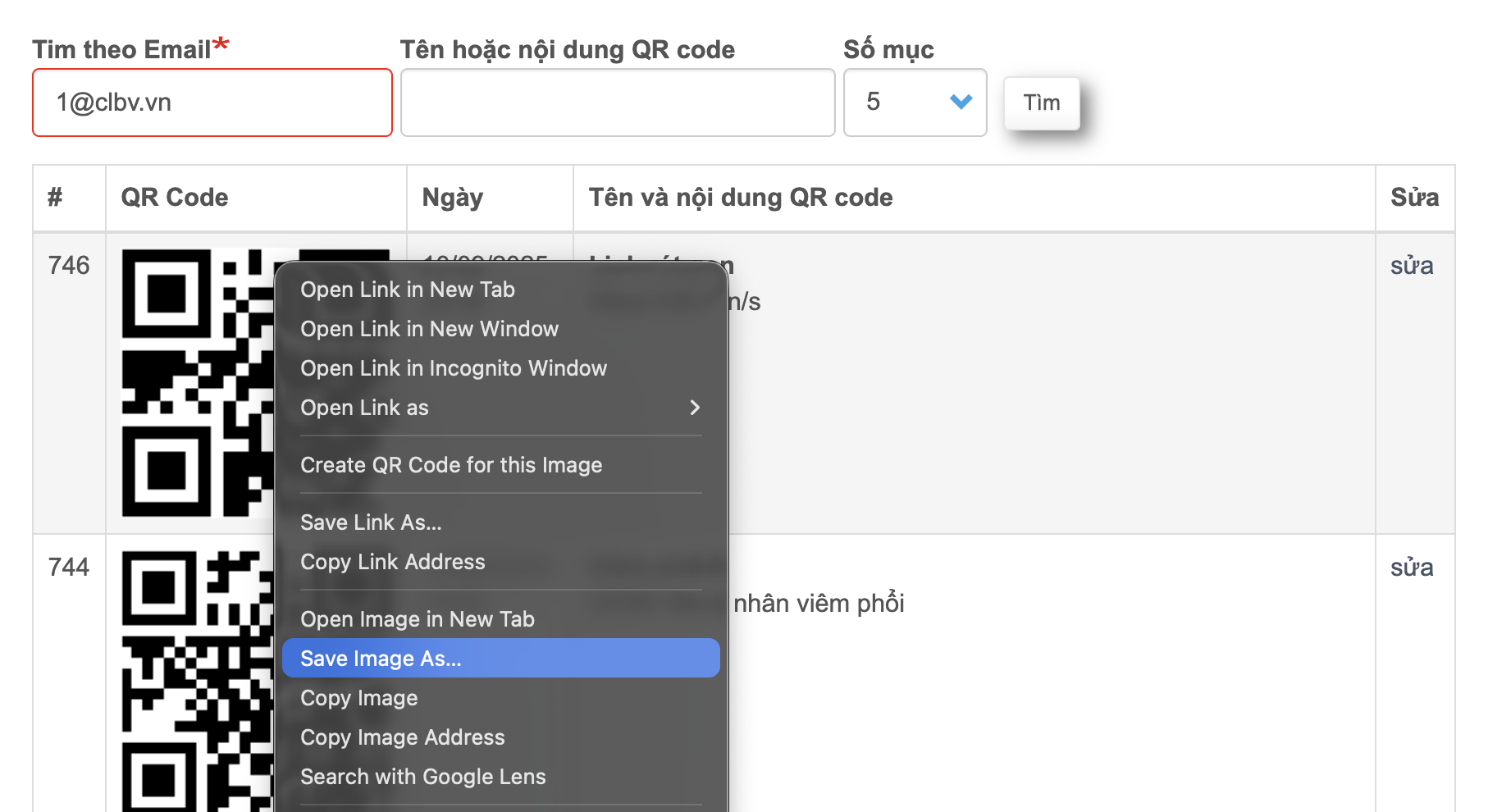 Trong danh sách các Link bạn tạo, sẽ có QR code được tự động tạo ra. Để tải về có các cách: