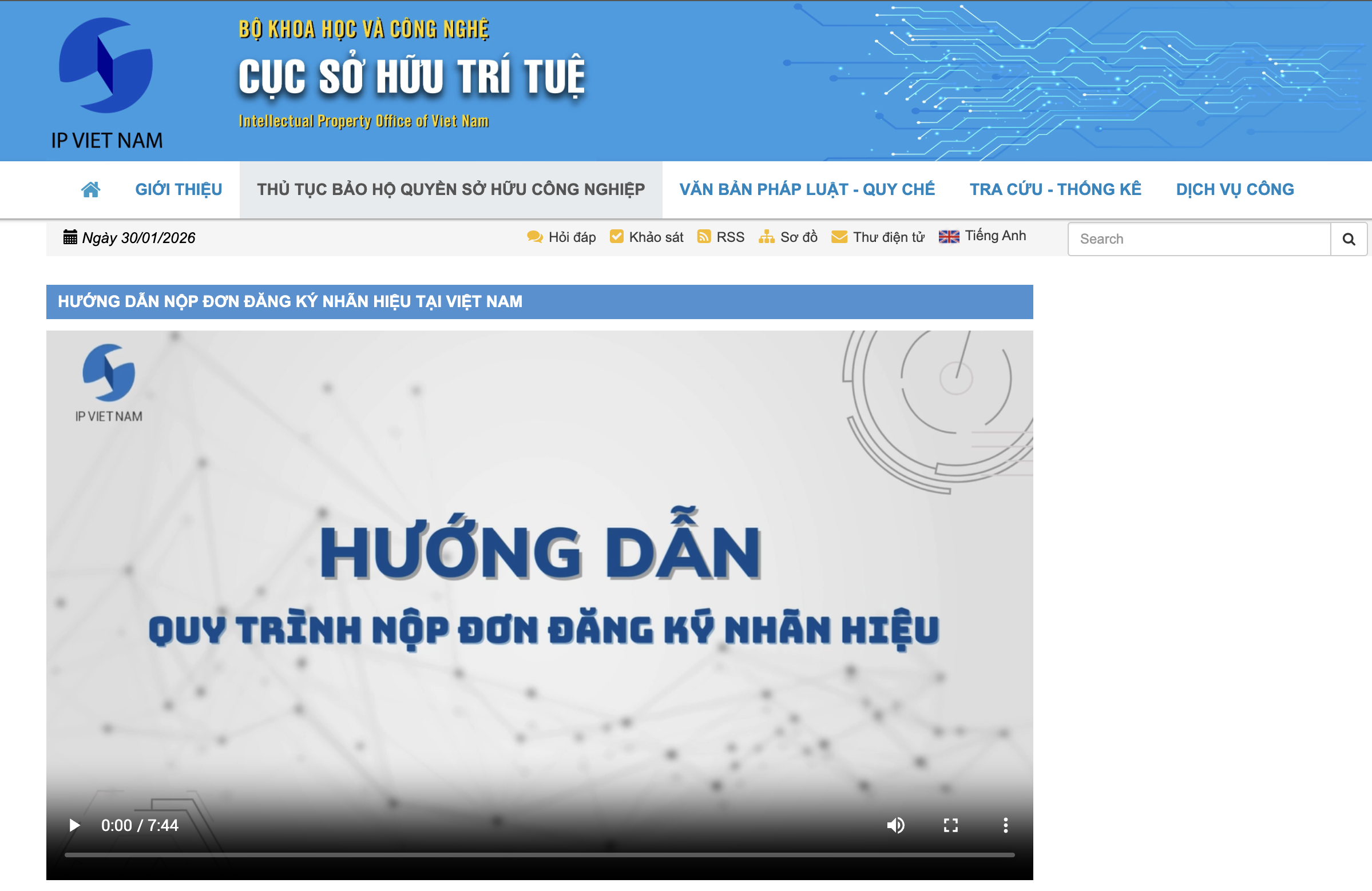 (Mục: Thủ tục đăng ký nhãn hiệu).https://ipvietnam.gov.vn/ Cổng thông tin Cục Bản quyền tác giả: