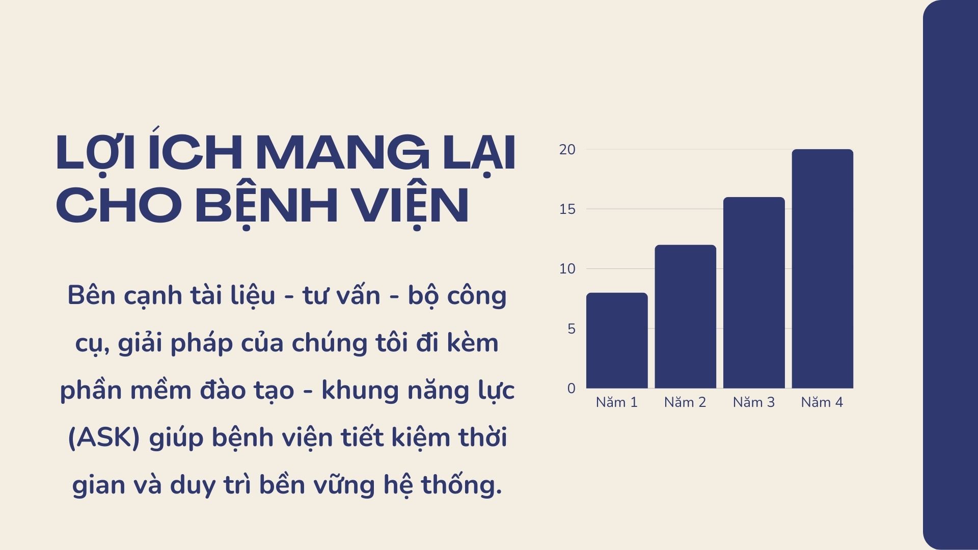 Bên cạnh đó, giải pháp của chúng tôi đi kèm phần mềm đào tạo - khung năng lực (ASK) giúp bệnh viện tiết kiệm thời gian và duy trì bền vững hệ thống.