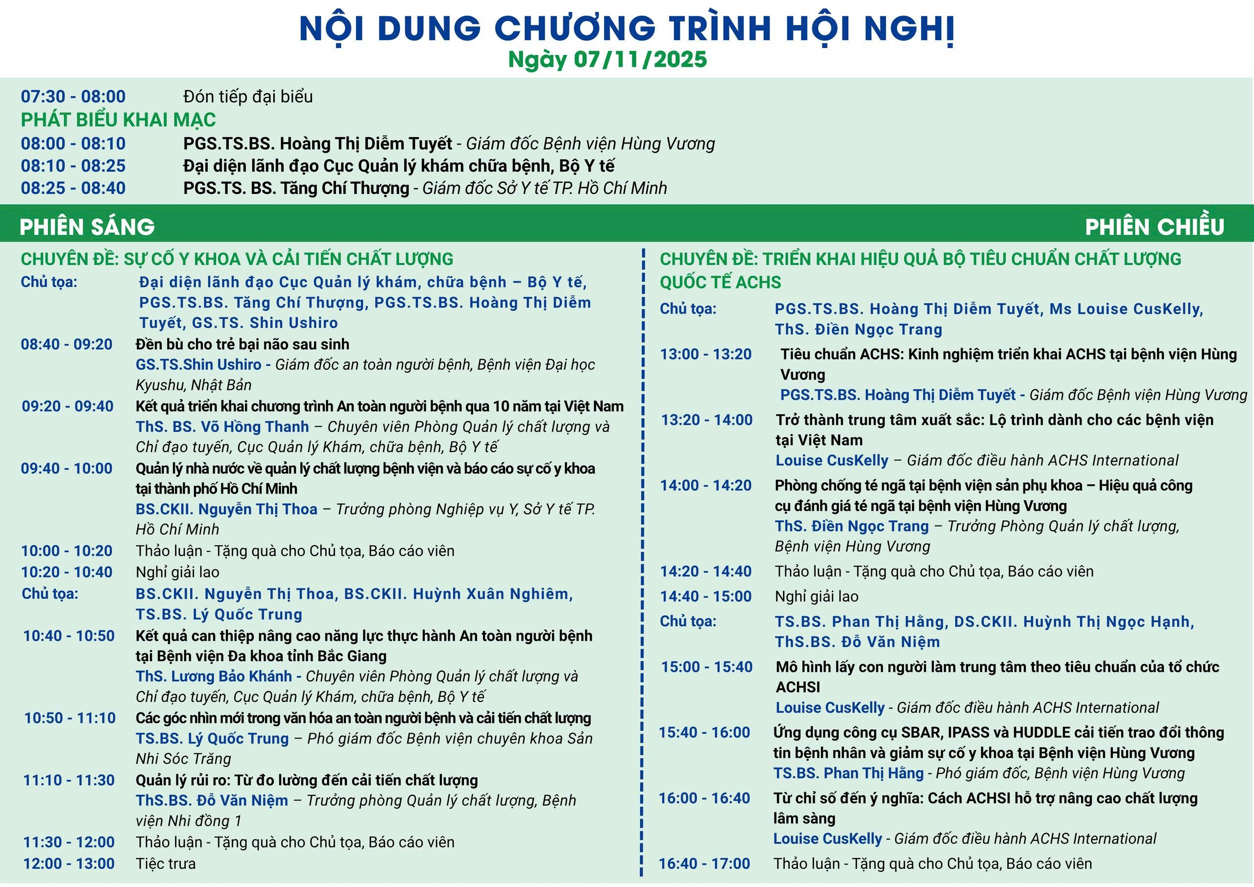 HỘI NGHỊ QUẢN LÝ CHẤT LƯỢNG VÀ AN TOÀN NGƯỜI BỆNH NĂM 2025