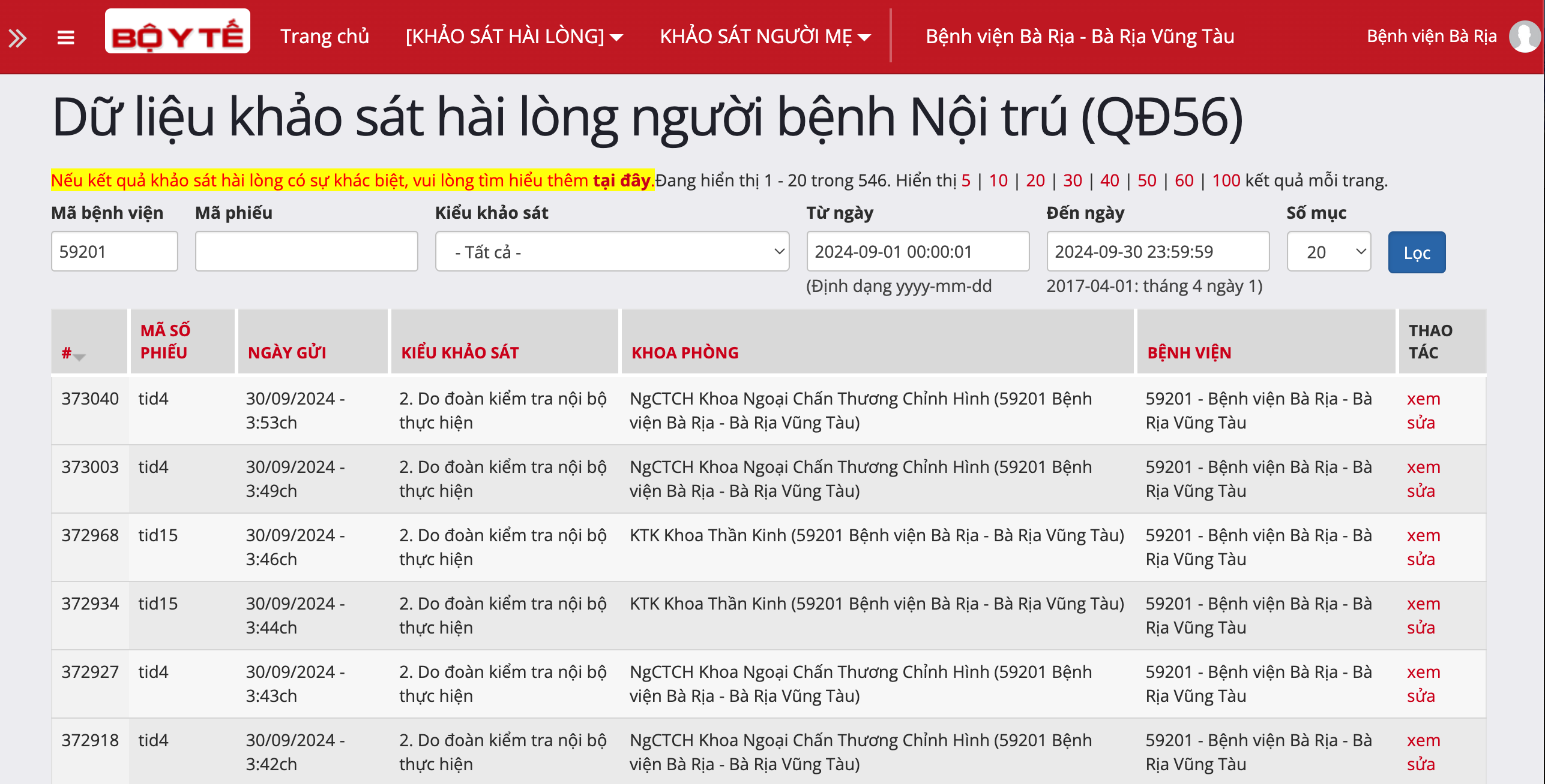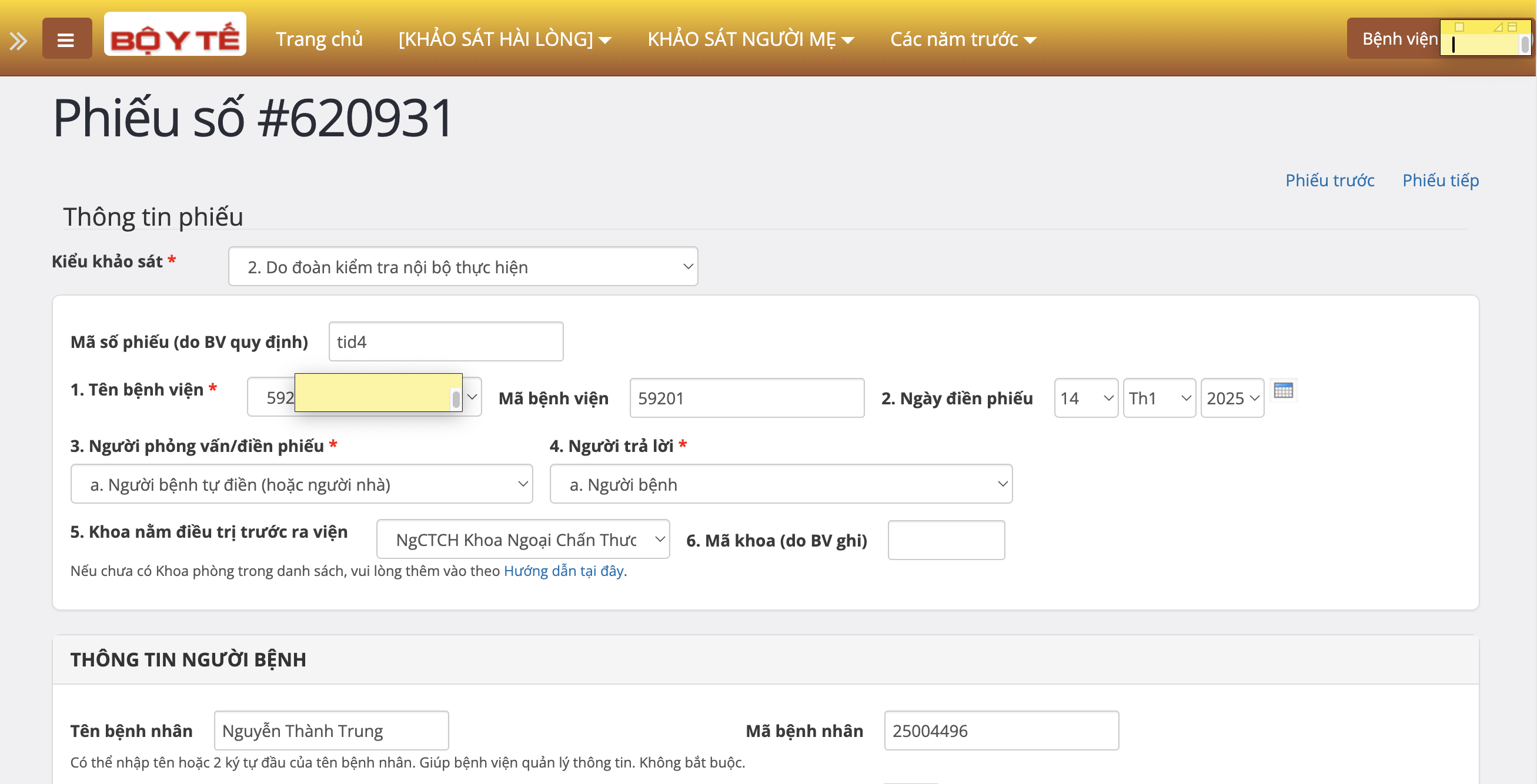 - Cần đăng nhập và thực hiện trên trên trang chatluongbenhvien.vn