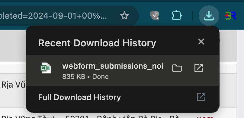 Lưu ý, danh sách dữ liệu tải về sẽ có số phiếu đúng như điều kiện đã lọc.