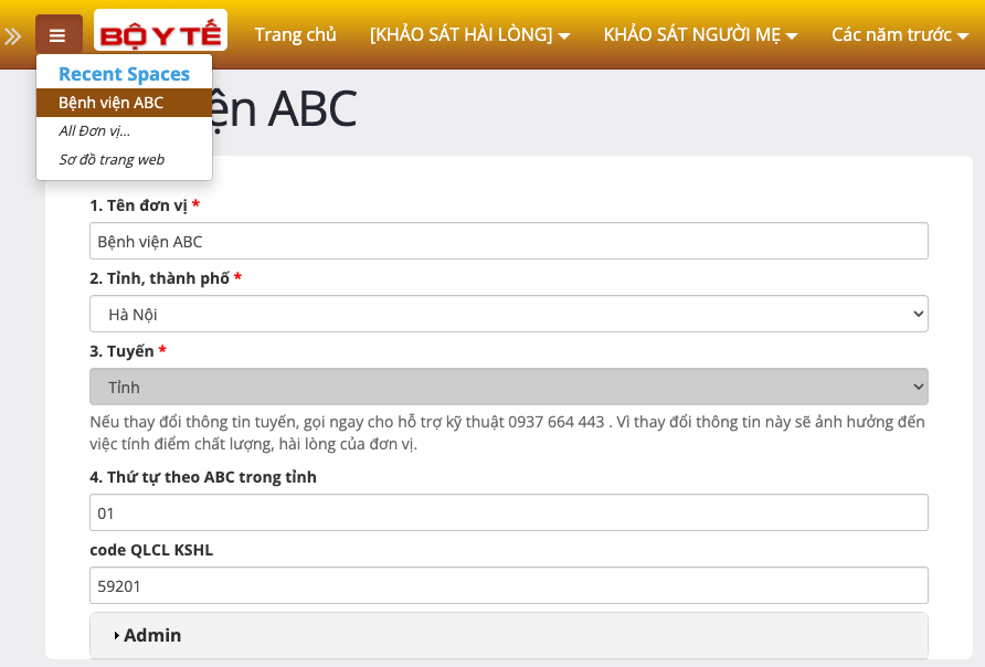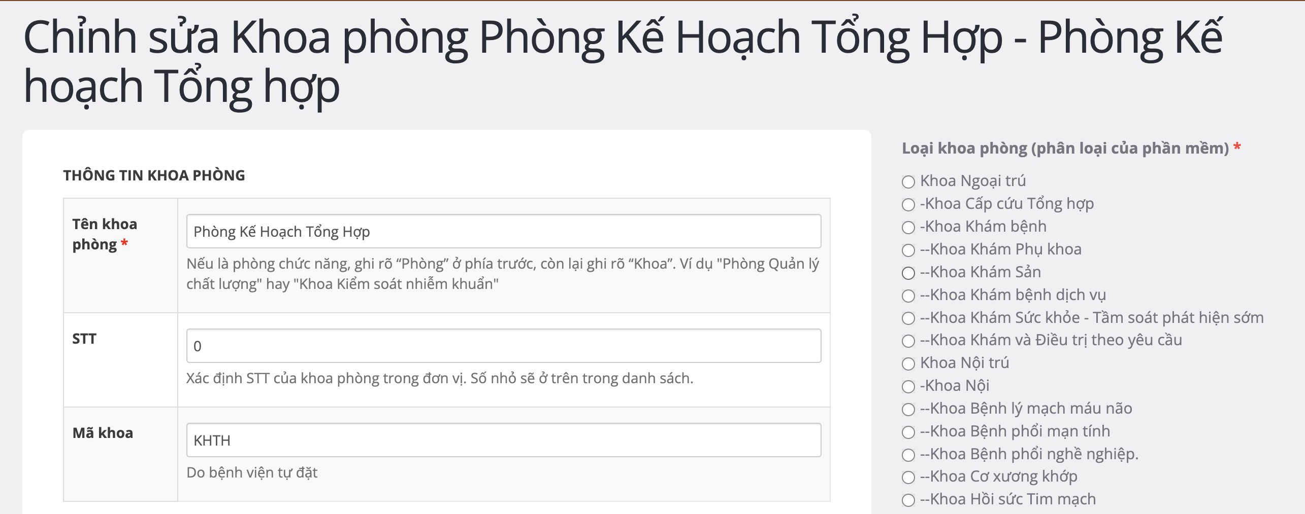 - Form sửa khoa phòng đã có: