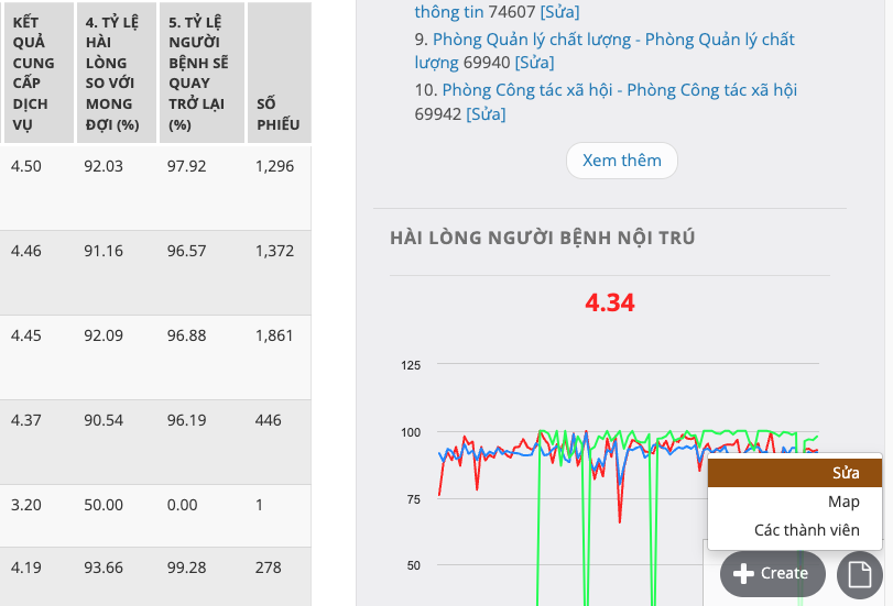 Ở cột bên phải sẽ thấy danh sách khoa phòng.