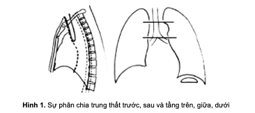 Phân chia trung thất phổ biến nhất thành 9 phần: Hai mặt phẳng ngang qua đỉnh quai động mạch chủ và chỗ phân đôi của khí quản chia trung thất thành trên, giữa và dưới. Hai mặt phẳng đứng ngang qua trước khí quản và sau khí quản chia trung thất thành trước, giữa và sau.