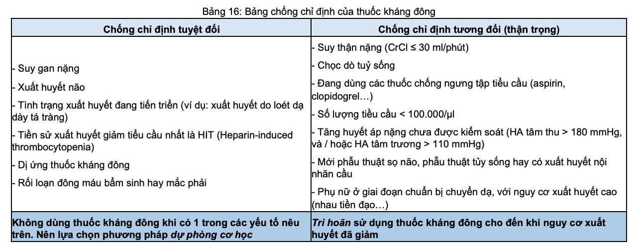 - Nếu bệnh nhân có chống chỉ định sử dụng thuốc kháng đông: Có thể sử dụng các biện pháp dự phòng cơ học.