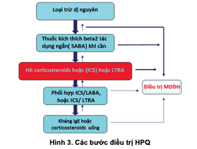 - Theo hướng dẫn điều trị HPQ của GINA, các biện pháp điều trị cơ bản là tránh tiếp xúc với các DN tại nơi ở kết hợp với việc dùng thuốc chống viêm và thuốc giãn phế quản. Tuy nhiên, điều trị thuốc chủ yếu chỉ là phương pháp điều trị triệu chứng và có nguy cơ tái phát bệnh khi ngừng hoặc giảm liều thuốc. Ngoài ra, điều trị corticoid đường thở liều cao còn có thể gây ra các tác dụng phụ tại chỗ hoặc toàn thân.