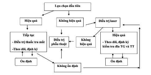 Nếu người bệnh không có điều kiện theo dõi hoặc điều trị thuốc lâu dài hoặc cơ sở y tế không có máy laser điều trị thì cần chỉ định điều trị phẫu thuật sớm.