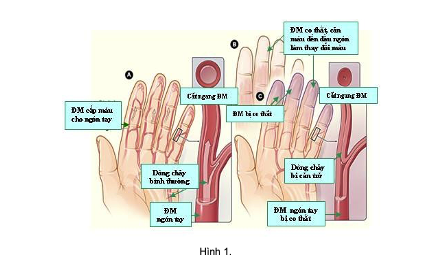 + Chụp Dopler mạch thấy giảm lưu lượng máu vi tuần hoàn.