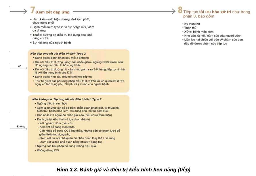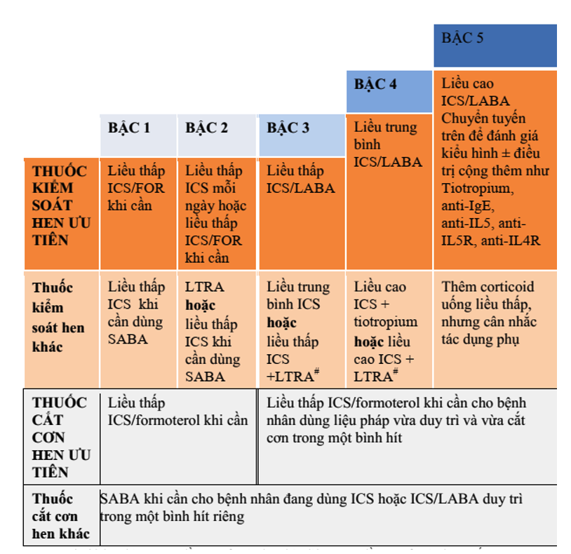 + Thuốc kiểm soát: nên tăng liều trong 2-4 tuần. Trường hợp hiện chưa sử dụng thuốc kiểm soát: nên bắt đầu theo liệu pháp có ICS liều ổn định.