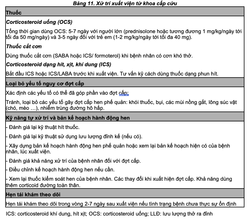 - Hẹn khám lại sau 2 ngày để đảm bảo việc điều trị vẫn được tiếp tục, triệu chứng hen được kiểm soát và chức năng phổi được cải thiện.