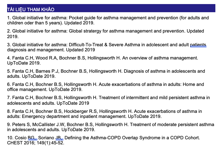 Hướng dẫn: Chẩn đoán và điều trị hen phế quản người ớn và trẻ em ≥ 12 tuổi