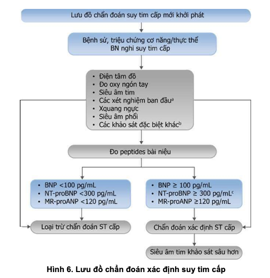 Chẩn đoán suy tim cấp dựa vào kết hợp lâm sàng và cận lâm sàng.