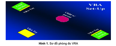 Loa ở phía bên phải và bên trái của trẻ. Các loa có đồ chơi (thường được gắn bên trong hộp) treo dưới đáy, có thể cử động khi đang đo. Đứa trẻ sẽ quay có “điều kiện” về bên hướng mà từ đó âm thanh được phát ra. Khi đứa trẻ quay đúng hướng, đồ chơi sẽ được thắp sáng lên và cử động, thu hút sự chú ý và khuyến khích trẻ tiếp tục tham gia vào thử nghiệm. Trẻ em (và người lớn) theo bản năng sẽ quay về phía âm thanh mới lạ mà không cần phải suy nghĩ về những phản ứng, đó là lý do tại sao thử nghiệm này hiệu quả cho trẻ em nhỏ đến 5 tháng tuổi. Phương pháp này cũng có thể được sử dụng với tai nghe chèn nhỏ, cho phép kiểm tra nghe riêng khả năng của mỗi tai. Dưới đây là một sơ đồ bố trí cho thử nghiệm VRA.