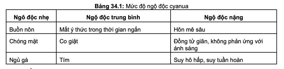 + Da và niêm mạc có màu xanh tím thậm hoặc tím đen (rất nặng).