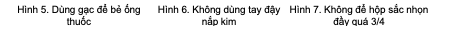 KHÔNG: đựng bông, gạc thấm cồn lưu trong hộp, lọ chứa vì cồn sẽ bốc hơi chỉ còn lại nước (hình 12).1