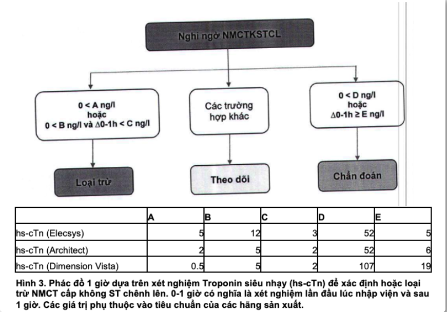 - Hiện nay, các hướng dẫn chẩn đoán phân tầng HCMVCKSTCL khuyên nên sử dụng phác đồ 3 giờ hoặc phác đồ 1 giờ trong chẩn đoán loại trừ HCMVCKSTCL (Hình 2 và 3).
