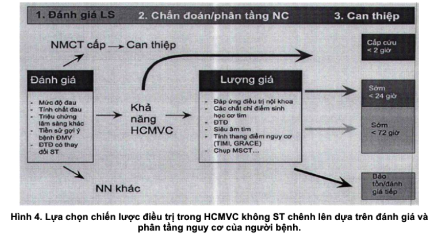 (tỷ lệ tử vong và các biến cố tim mạch rất cao nếu không được xử trí kịp thời). Nhóm này có chỉ định về chiến lược can thiệp cấp cứu trong vòng 2 giờ từ khi xác định chẩn đoán.