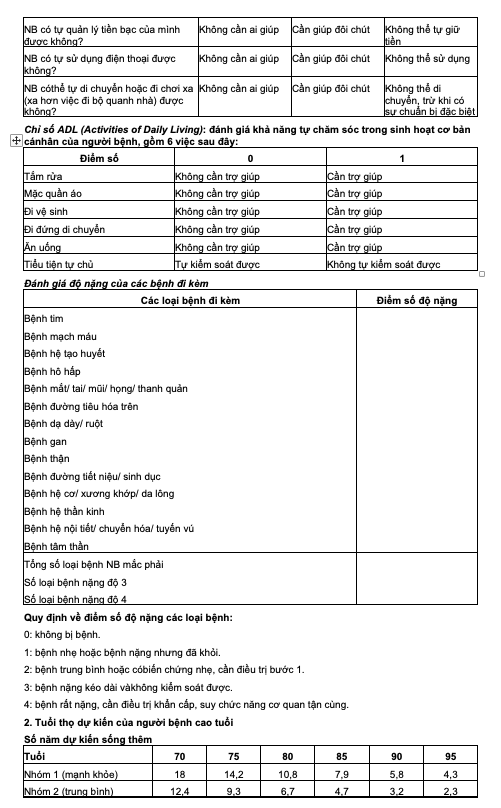 Phụ lục 1: Đánh giá tuổi thọ dự kiến của người bệnh ung thư tuyến tiền liệt cao tuổi (≥ 70 tuổi)