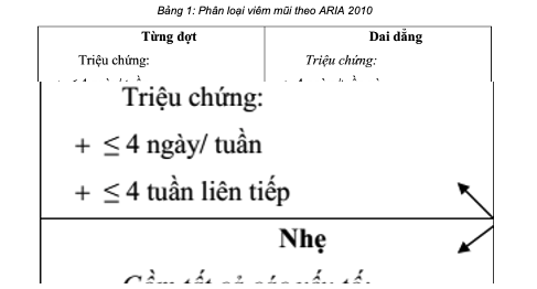 Bảng 1: Phân loại viêm mũi theo ARIA 2010