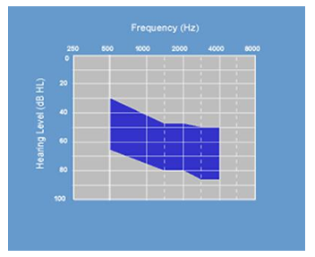 - Điếc từ trung bình tới điếc nặng (theo hình thính lực đồ bên dưới)
