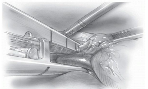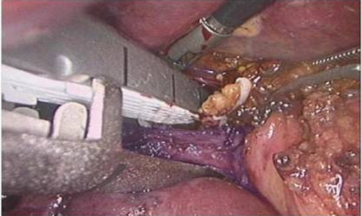 Tĩnh mạch trên gan trái được cắt bằng stapler mạch máu