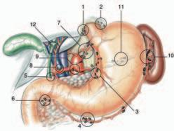 - Kết thúc thì nạo vét hạch ở các nhóm 8 (động mạch gan chung), 9 (động mạch thân tạng), 12 (dây chằng gan tá tràng trước tĩnh mạch cửa) và nhóm 9 (động mạch lách), nhóm 10 (rốn lách).