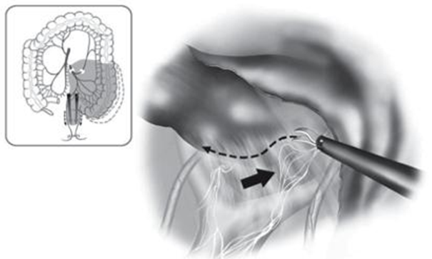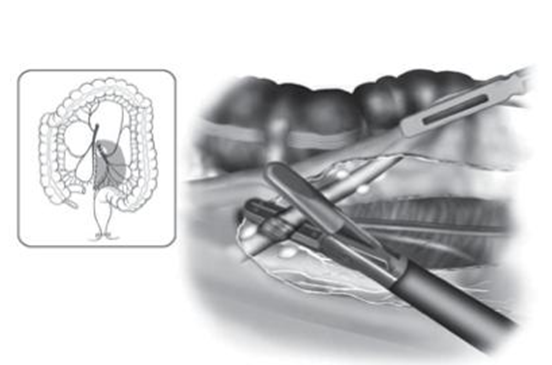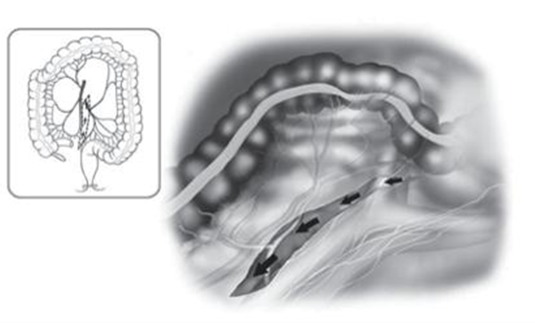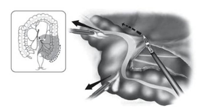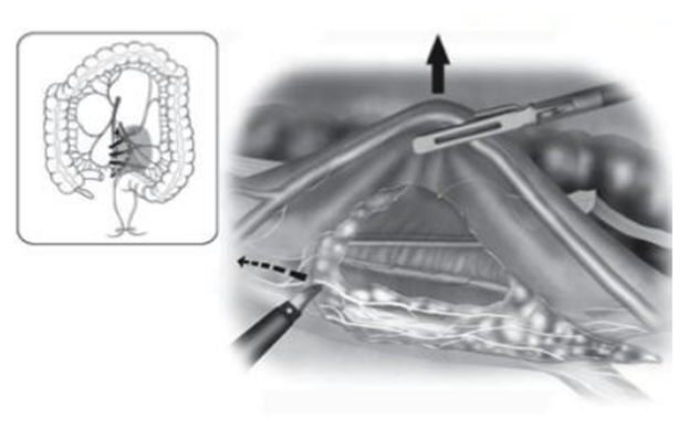 Giải phóng đại tràng và thắt mạch máu có thể thực hiện theo 2 phương pháp từ trong ra ngoài và từ ngoài vào trong. Chúng tôi trình bày kỹ thuật từ trong ra ngoài.