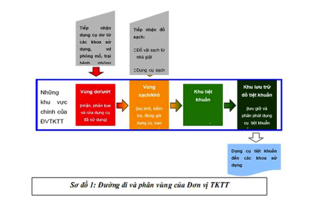 - Đường đi của quy trình nên một chiều: từ vùng bẩn đến vùng sạch (Sơ đồ 1 minh họa cấu trúc của một đơn vị TKTT).