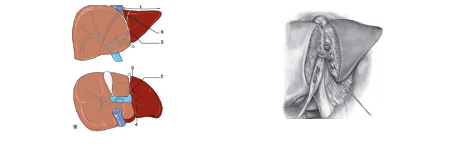 BƯỚC 3: Giải phóng gan: dây chằng tròn, dây chằng liềm, dây chằng tam giác, dây chằng vành. Mở mạc nối nhỏ, tách dây chằng tĩnh mạch chỗ sát với cuống thùy trái (điểm dưới cùng bên trái dây chằng tròn.