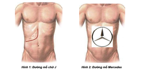 - Bước 1: Rạch da theo đường trắng giữa, hoặc đường Kehr, đường chữ J, đường Mercedes.