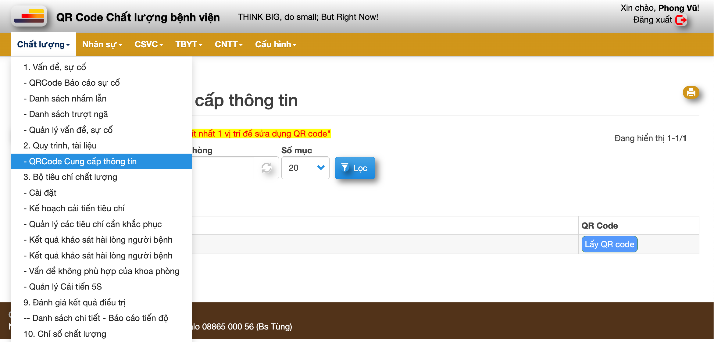 - Click vào "Lấy QR Code" để vào trang QR Code có sẵn các thông tin liên quan đến vị trí tương ứng.