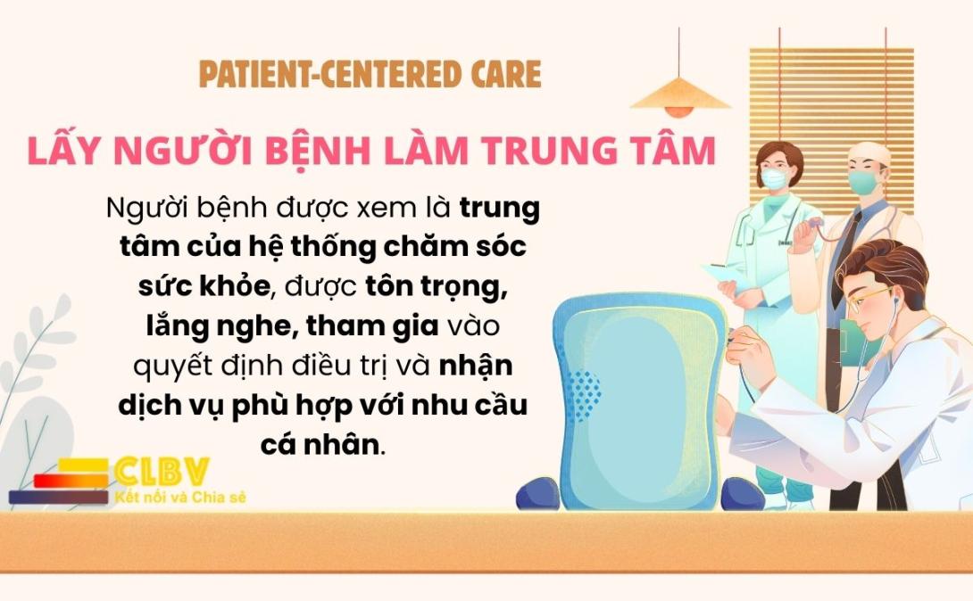 Người bệnh được xem là trung tâm của hệ thống chăm sóc sức khỏe, được tôn trọng, lắng nghe, tham gia vào quyết định điều trị và nhận dịch vụ phù hợp với nhu cầu cá nhân.