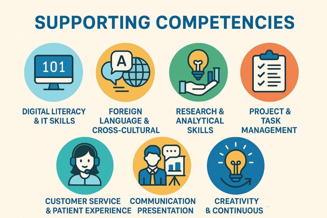 Trong Khung năng lực bệnh viện, nhóm Năng lực bổ trợ (Supporting Competencies) là những năng lực chung, mang tính nền tảng hỗ trợ cho Core – Functional – Leadership. Đây là “công cụ” giúp nhân viên y tế và quản lý làm việc hiệu quả hơn trong bối cảnh hiện đại.
