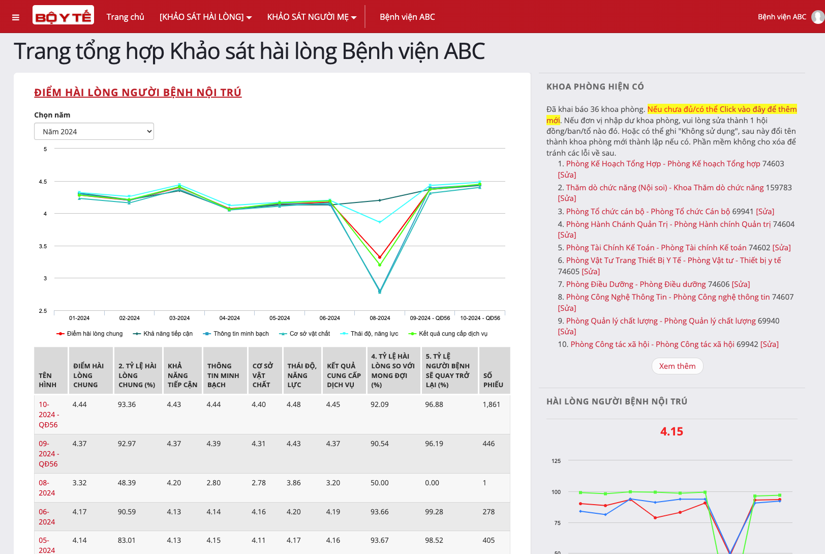 - Do đơn vị chưa khai báo khoa phòng và chưa khảo sát theo khoa phòng.