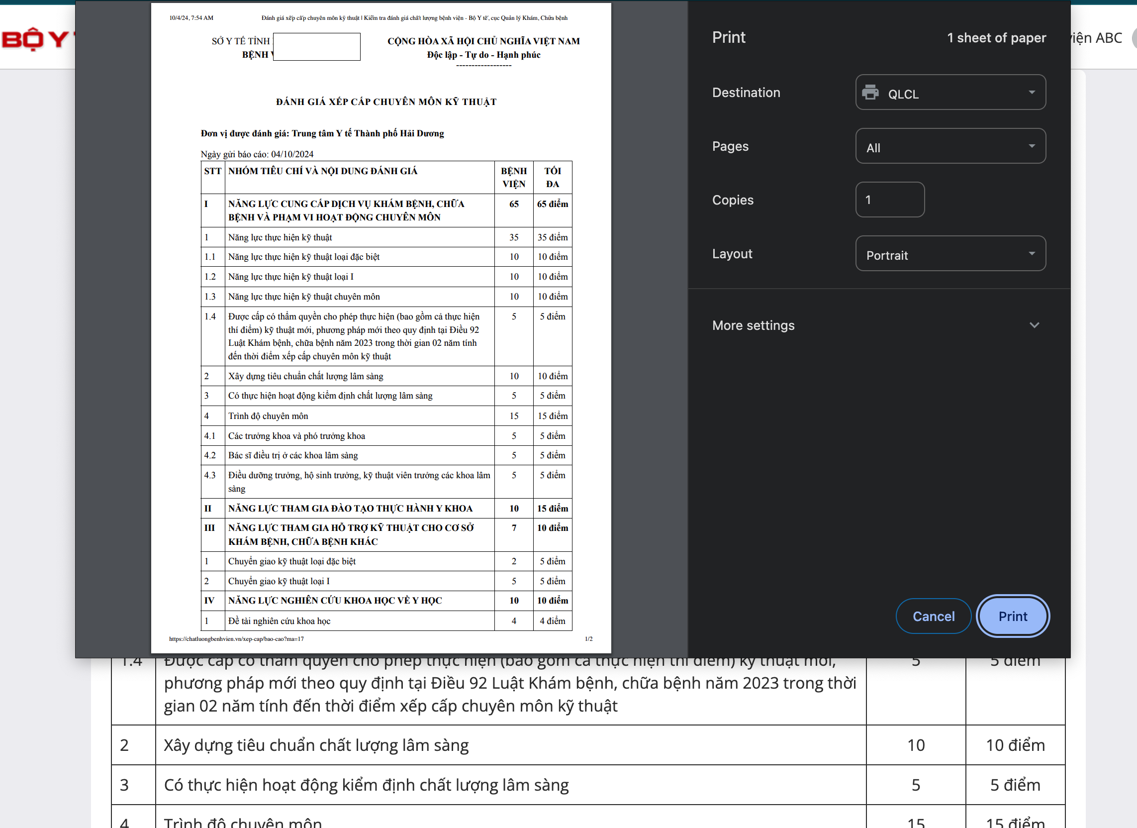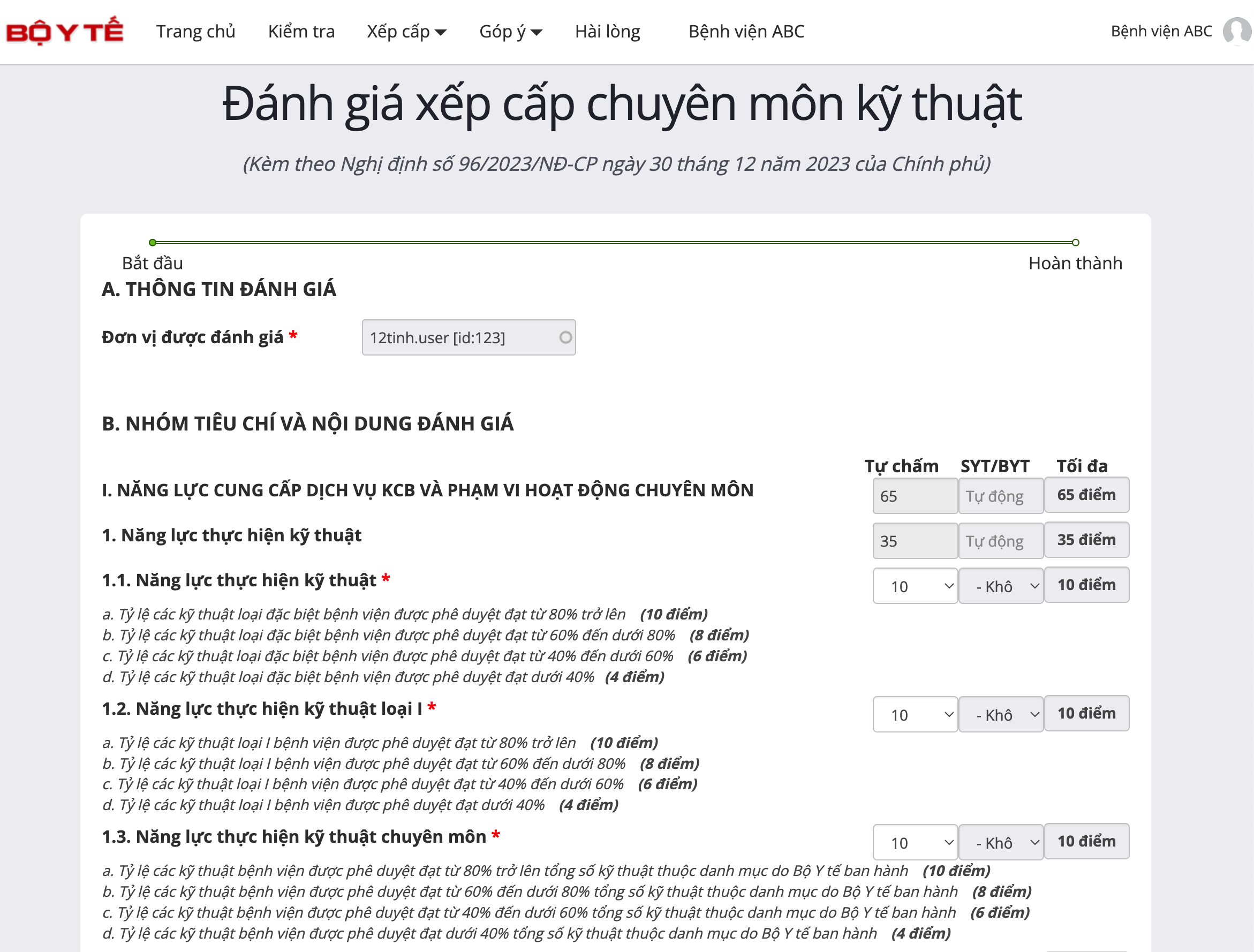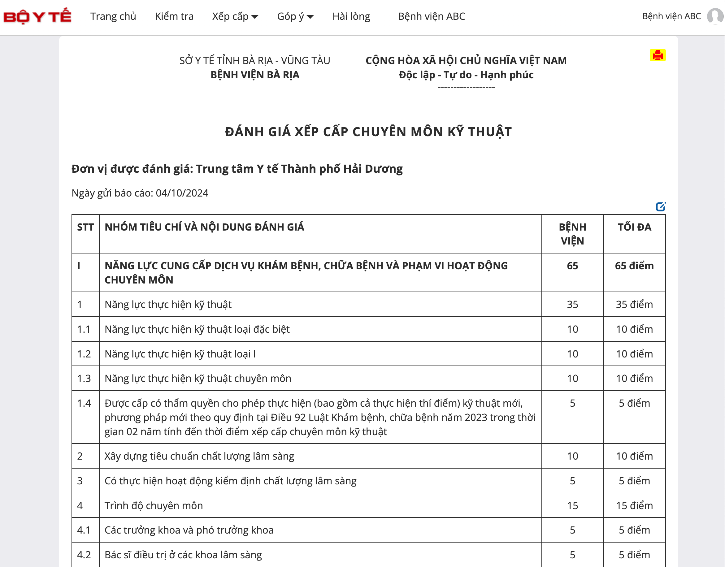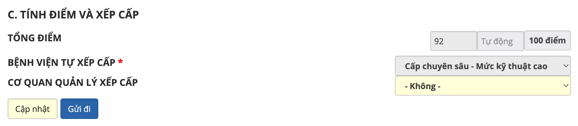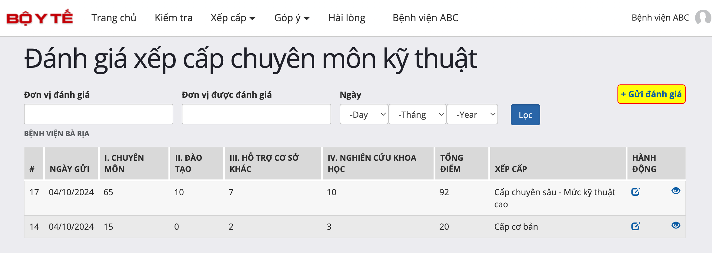 - Sau khi sửa, bệnh viện lưu lại. Chỉ lưu thành công khi phần mềm tự về trang "Đánh giá xếp cấp chuyên môn kỹ thuật" và thấy các điểm đã được cập nhật.