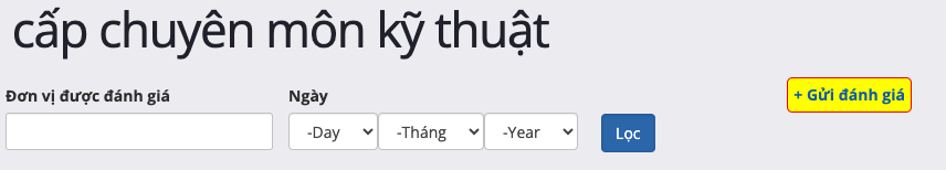 - Trong trang "Đánh giá xếp cấp chuyên môn kỹ thuật", click vào "+ Gửi đánh giá" ở góc trên phải.