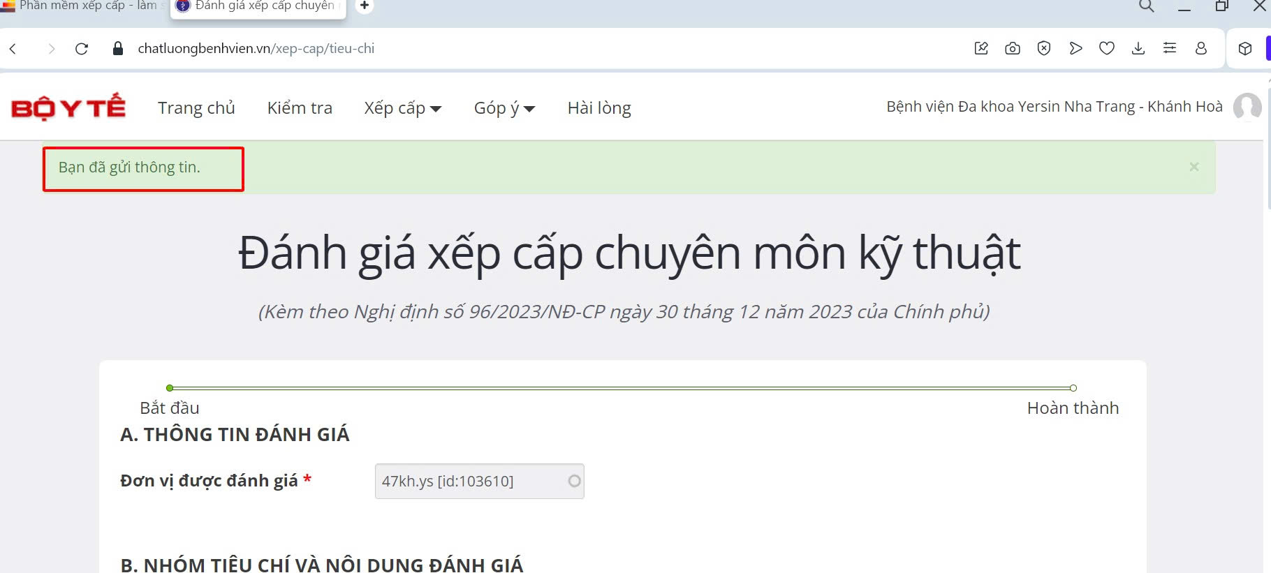 Nếu có vấn đề, có thể chụp màn hình gửi admin (theo sđt trên trang chatluongbenhvien.vn)