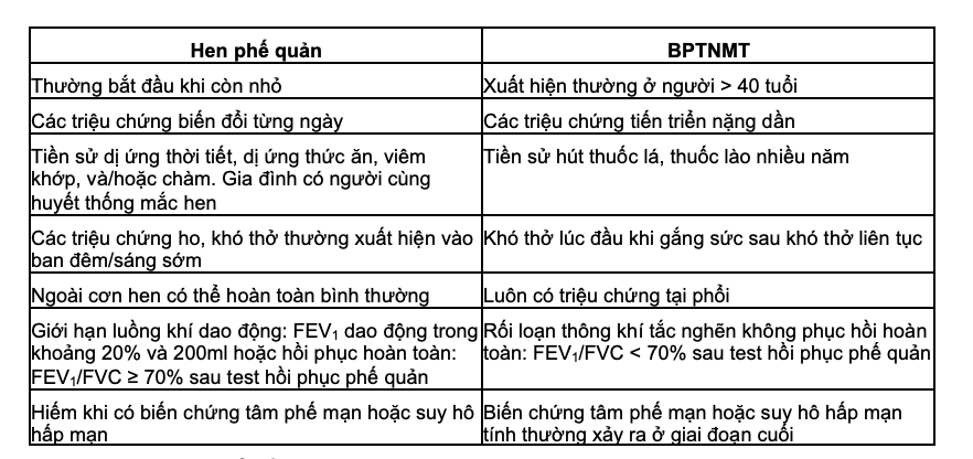 Bảng 1.2. Chẩn đoán phân biệt BPTNMT với hen phế quản