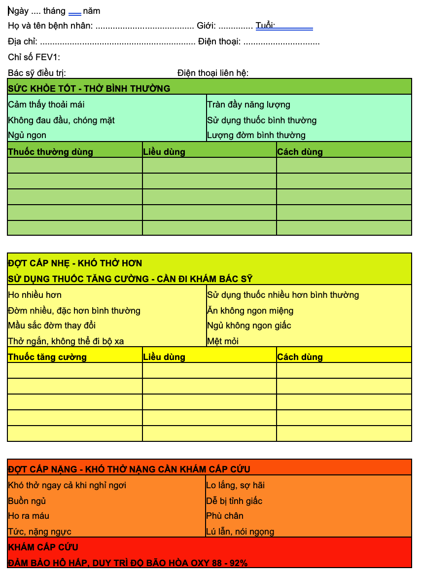 □ Phục hồi chức năng hô hấp □ Kĩ thuật tự xử trí (khó thở, kế hoạch hành động)