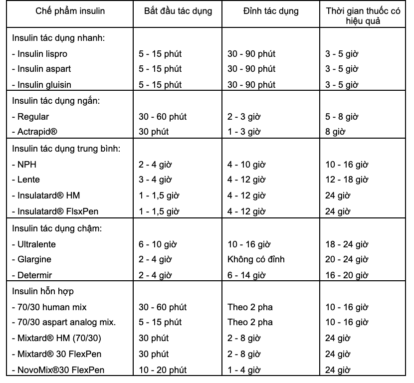 Sử dụng insulin để đạt được hiệu quả kiểm soát chuyển hóa glucose tốt nhất đòi hỏi sự hiểu biết về khoảng thời gian tác dụng của các loại insulin khác nhau.