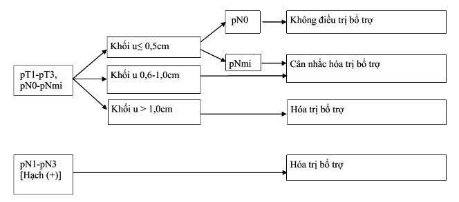 - Đánh giá trên mô bệnh học cần bao gồm số lượng u, vị trí u, đường kính lớn nhất của khối u, đánh giá bờ diện cắt, thể mô bệnh học, độ mô học, xâm lấn mạch, số lượng hạch di căn trên số lượng hạch lấy được.