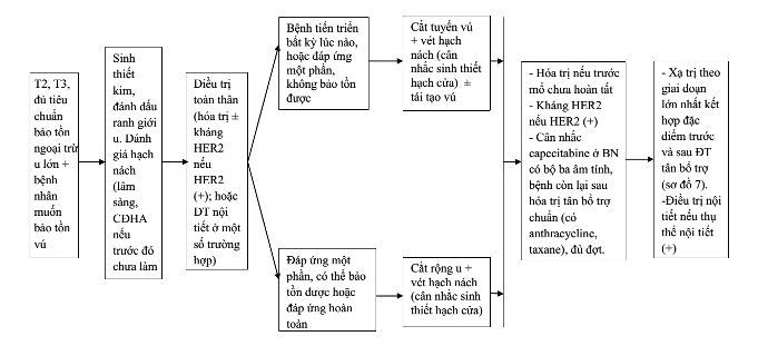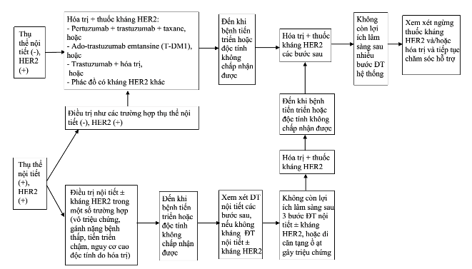 Nếu không có điều kiện sử dụng thuốc kháng HER2, điều trị theo các phác đồ như với HER2 âm tính.